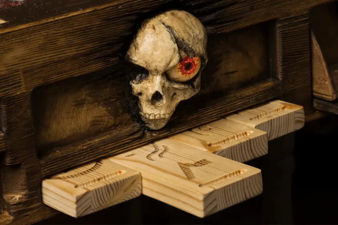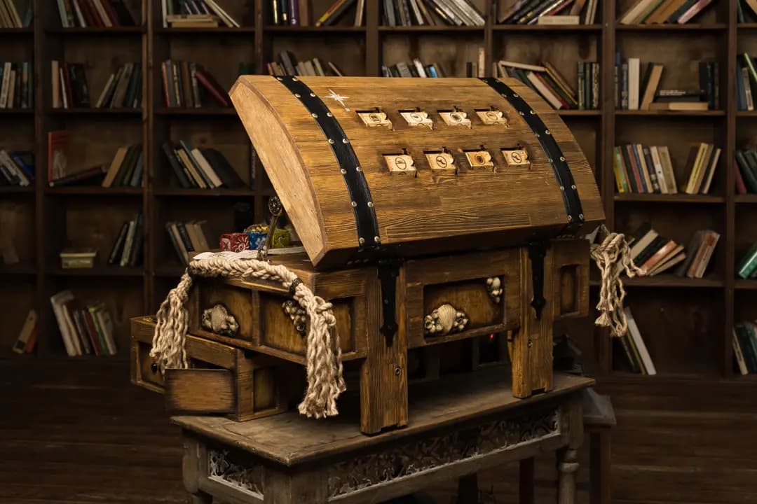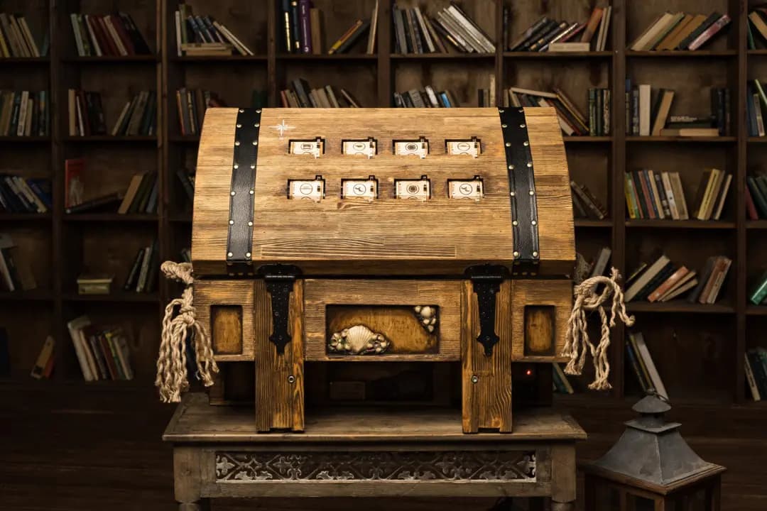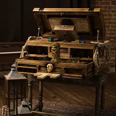 The Dead Man's Chest is a portable escape game with WOW effects, electronic and mechanical puzzles, and tactile sensations. It is easy to transport to any place where your customers are.